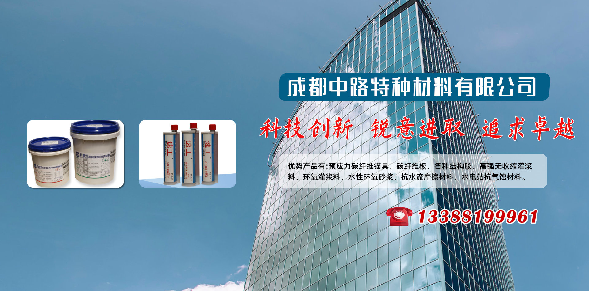 成都中路特種材料有限公司借助清華大學(xué)高分子材料學(xué)科、晨光化工研究院、西南交通大學(xué)、四川交通職業(yè)技術(shù)學(xué)院科研技術(shù)平臺成為一家集新材料研發(fā)、銷售、技術(shù)服務(wù)和施工于一體的專業(yè)服務(wù)公司,優(yōu)勢產(chǎn)品有:預(yù)應(yīng)力碳纖維錨具、碳纖維板、各種結(jié)構(gòu)膠、高強(qiáng)無收縮灌漿料、環(huán)氧灌漿料、水性環(huán)氧砂漿、抗水流摩擦材料、水電站抗氣蝕材料和研發(fā)各種特殊用途膠黏劑產(chǎn)品地處西南腹地成都,業(yè)務(wù)覆蓋四川各大中小城市、重慶、云南、昆明、新疆、西藏等區(qū)域。產(chǎn)品涵蓋各種加固施工材料、施工設(shè)備及施工配件,品牌有威士邦等aa進(jìn)口品牌,同時(shí)批發(fā)銷售國產(chǎn)高、中、低端品牌,為客戶提供全面參考。